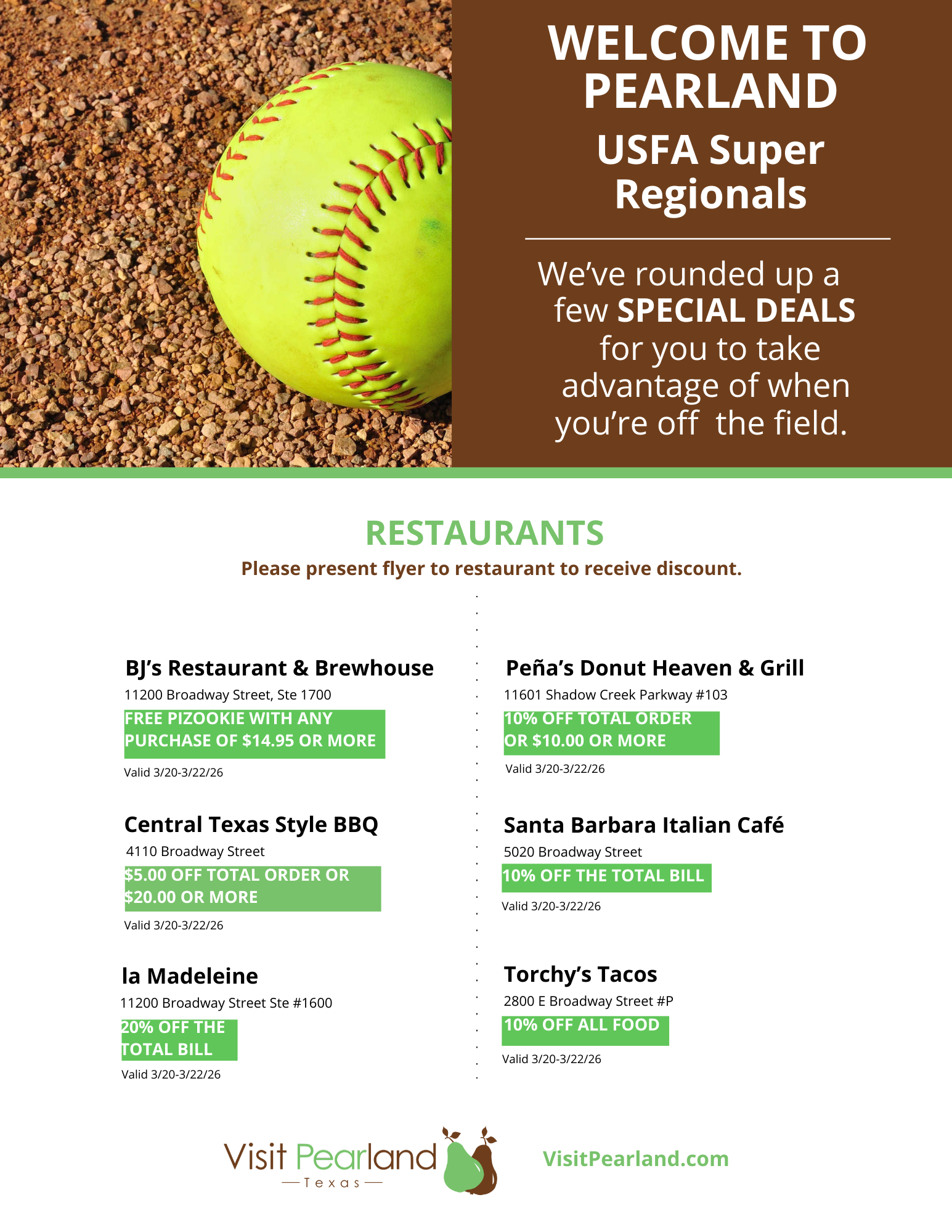 Visit Pearland is excited to welcome athletes, coaches and family members to this year’s Super Regionals. We are proud to offer the special, hotel rates below to participating teams.
